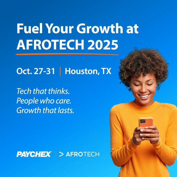 @Paychex We're heading to @AfroTech! 🙌 Stop by Booth #1336 to connect with the Paychex team and explore how we're powering business growth through innovation and technology. #AfroTech2025 #TechCommunity #TechCareers #FutureOfW@AfroTech! 🙌 Stop by Booth #1336 to connect with the Paychex team and explore how we're powering business growth through innovation and technology. #AfroTech2025 #TechCommunity #TechCareers #FutureOfWoMSg